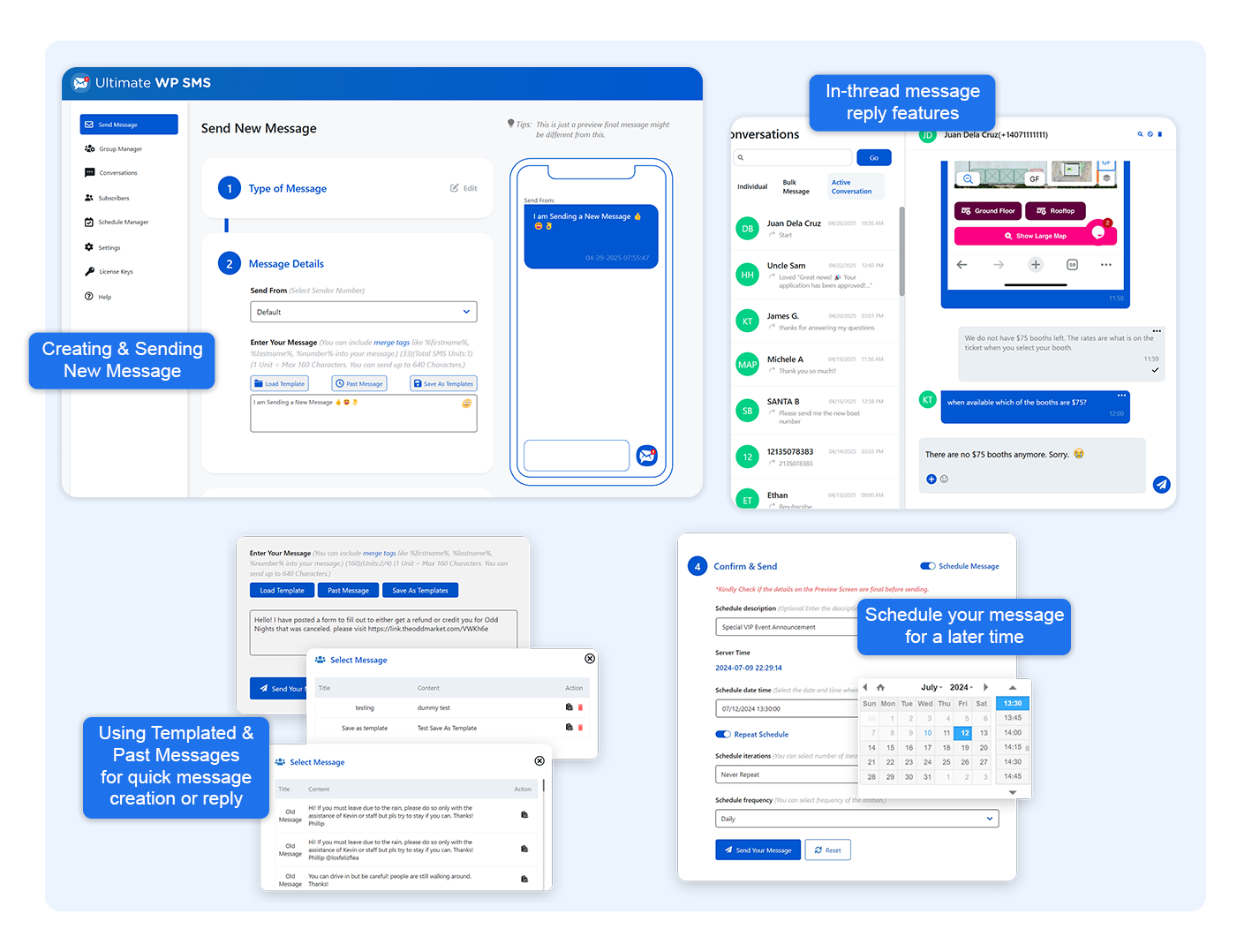 The Ultimate WP SMS (or UWS) WordPress SMS plugin provides a great way of connecting with your customers, blog subscribers or club members. This plugin allows you to send SMS, MMS and voice messages to a group or to individuals.